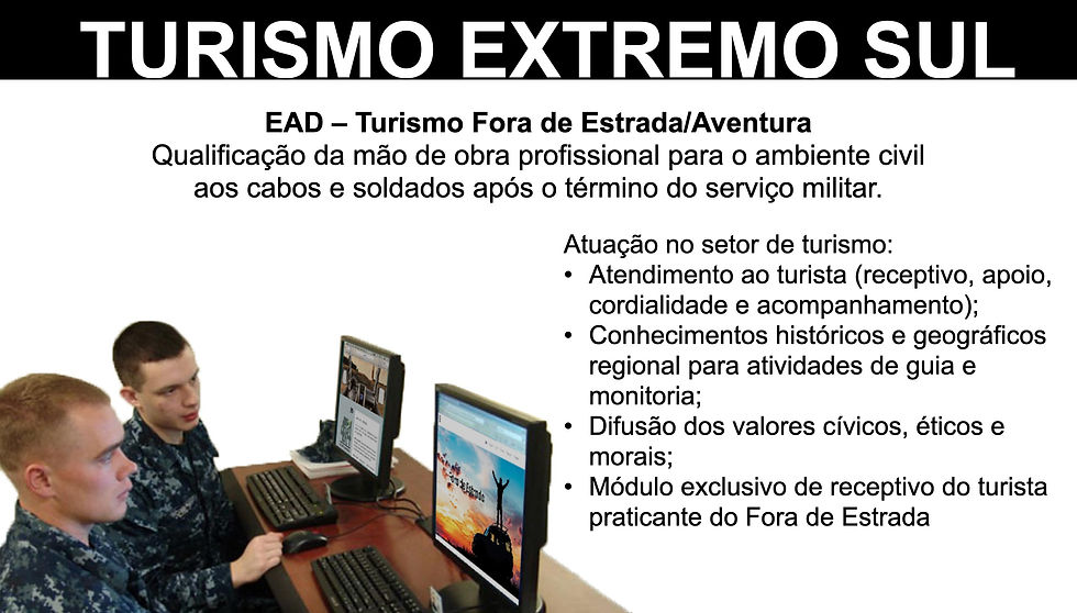 Dentro desse contexto, o projeto também contemplou a capacitação profissional de jovens soldados em processo de desligamento do serviço militar, preparando-os para atuar no setor de turismo, receptivo e atividades relacionadas, conectando qualificação, sustentabilidade e impacto positivo nos territórios envolvidos.